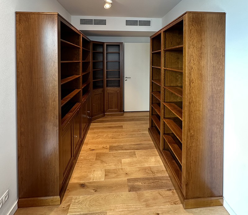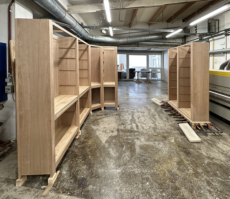 Biblio Directoire, merisier finition orl + unalit pour le coin.