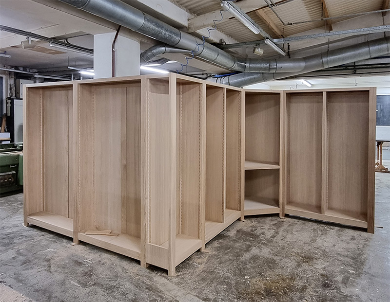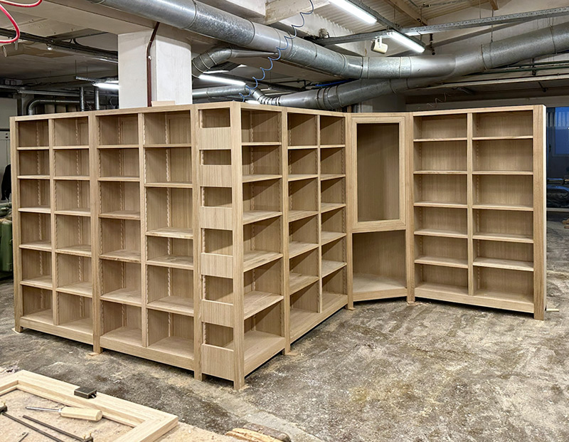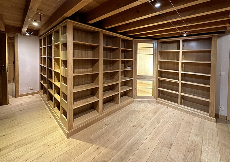 Biblio mur à mur, Louis Philippe simple, chêne naturel.