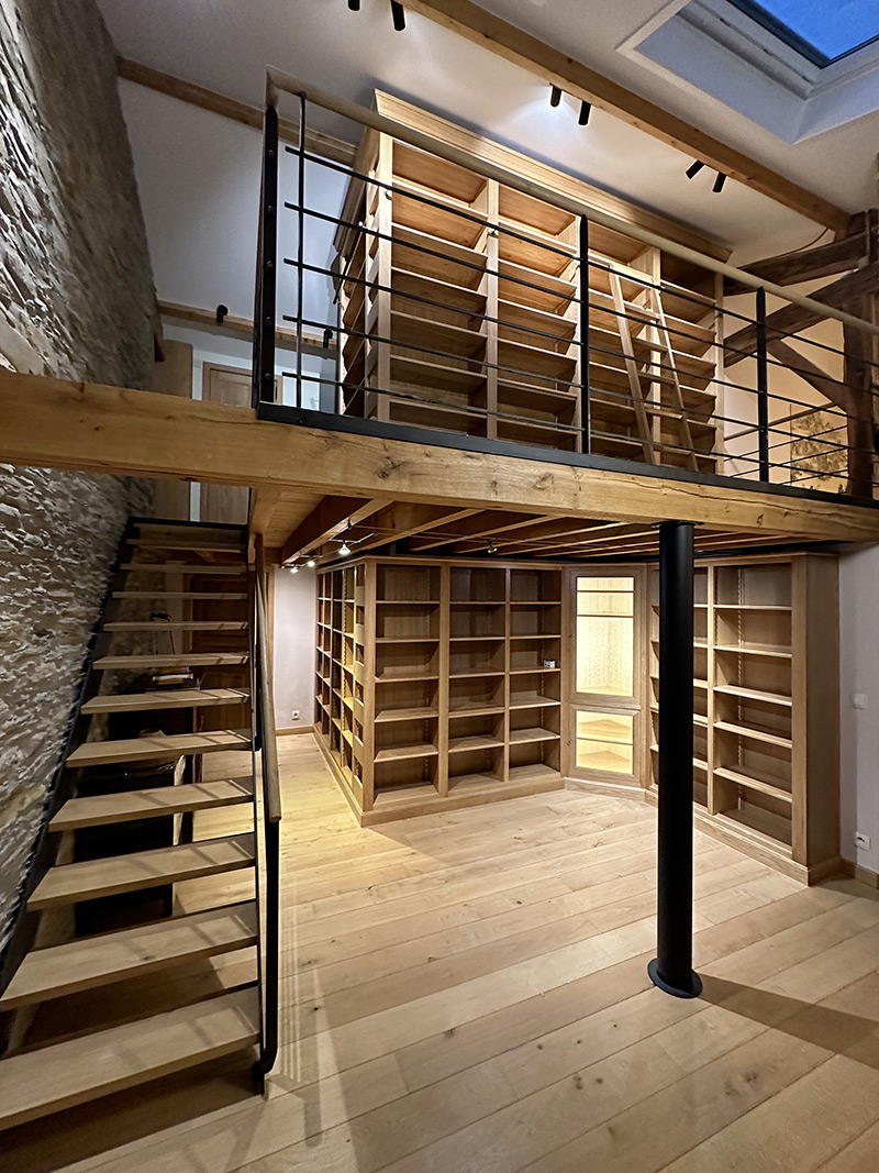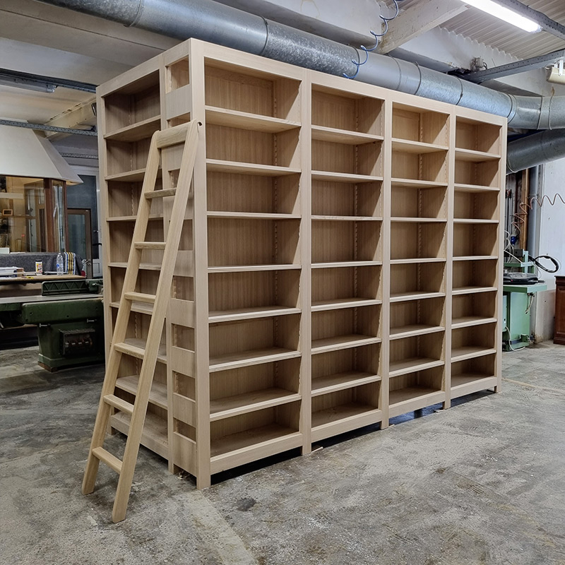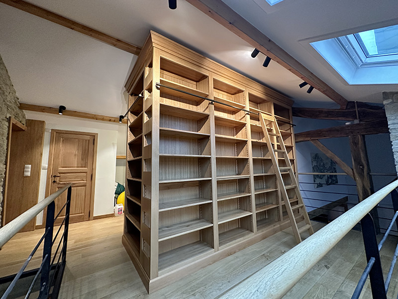 Biblio mur à mur, Louis Philippe simple, chêne naturel.